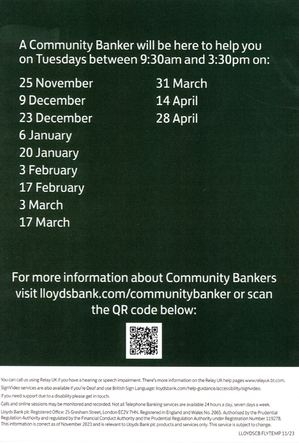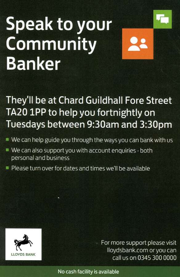 The Community Banker can be found in the Bondfield Room of the Guildhall fortnightly, commencing Tuesday 25th November 9:30am-3:30pm.